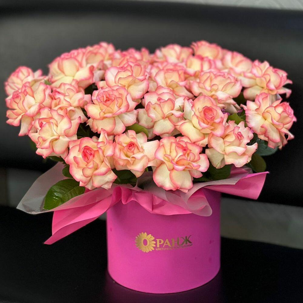 Букет из 25 французских роз в коробке от Цветочного магазина Оранж Алматы
