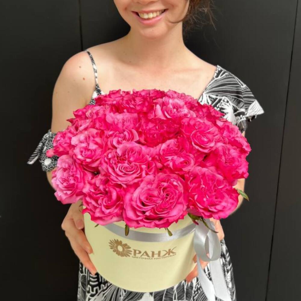 Букет из 25 Розовых Пионовидных Роз в Коробке: Изысканность и Нежность Подарите ощущение нежности и роскоши с букетом из 25 розовых пионовидных роз в стильной коробке от Oранж Алматы. Эти великолепные цветы, символизирующие романтику и утонченность, создадут атмосферу счастья и праздника.