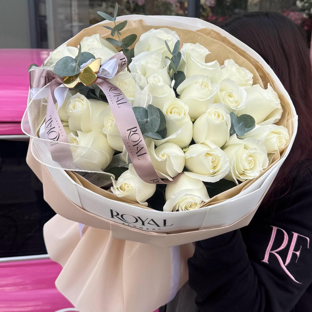 Эвкалипт - 1 шт. Роза - 25 шт. Оформление - 1 шт. сердце декоративное - 1 шт.