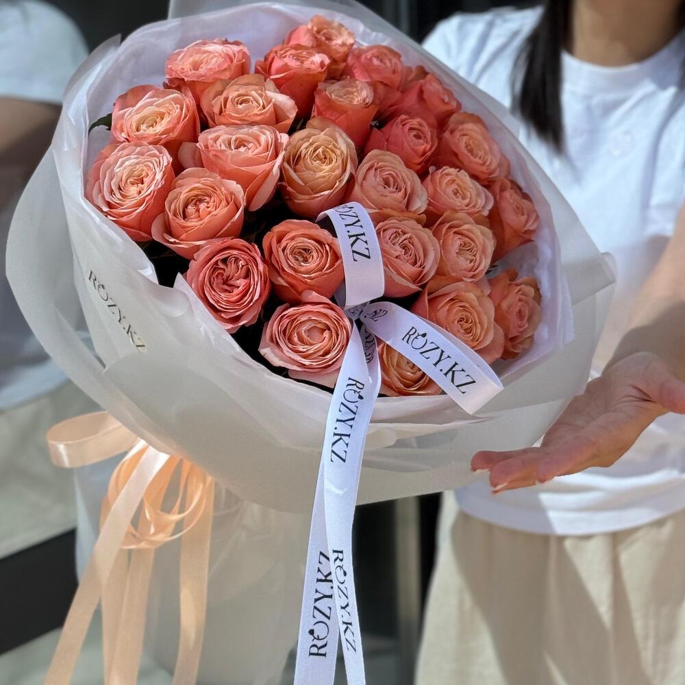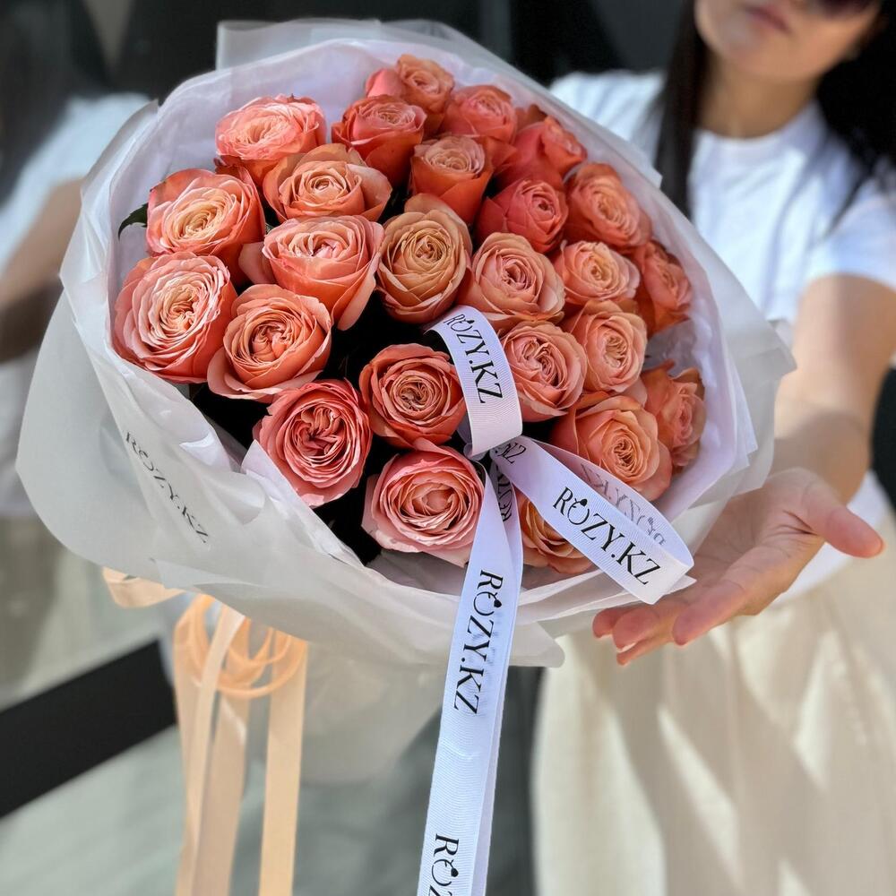 Букет из 25 шикарных пионовидных роз сорта KAHALA