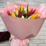 Яркий весенний букет из микс тюльпанов