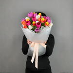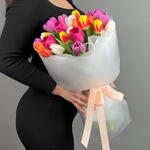 Тюльпаны выглядят одновременно нежно и элегантно, поэтому они всегда остаются одним из самых любимых и универсальных цветов. Букет оформляется в стильную упаковку, которая подчёркивает естественную красоту цветов и делает композицию ещё более эффектной. Свежие тюльпаны долго сохраняют свою красоту и наполняют пространство весенним настроением.