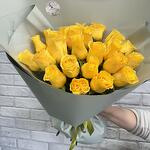 Лента - 1 шт. Бумага - 5 шт. желтые розы - 25 шт.