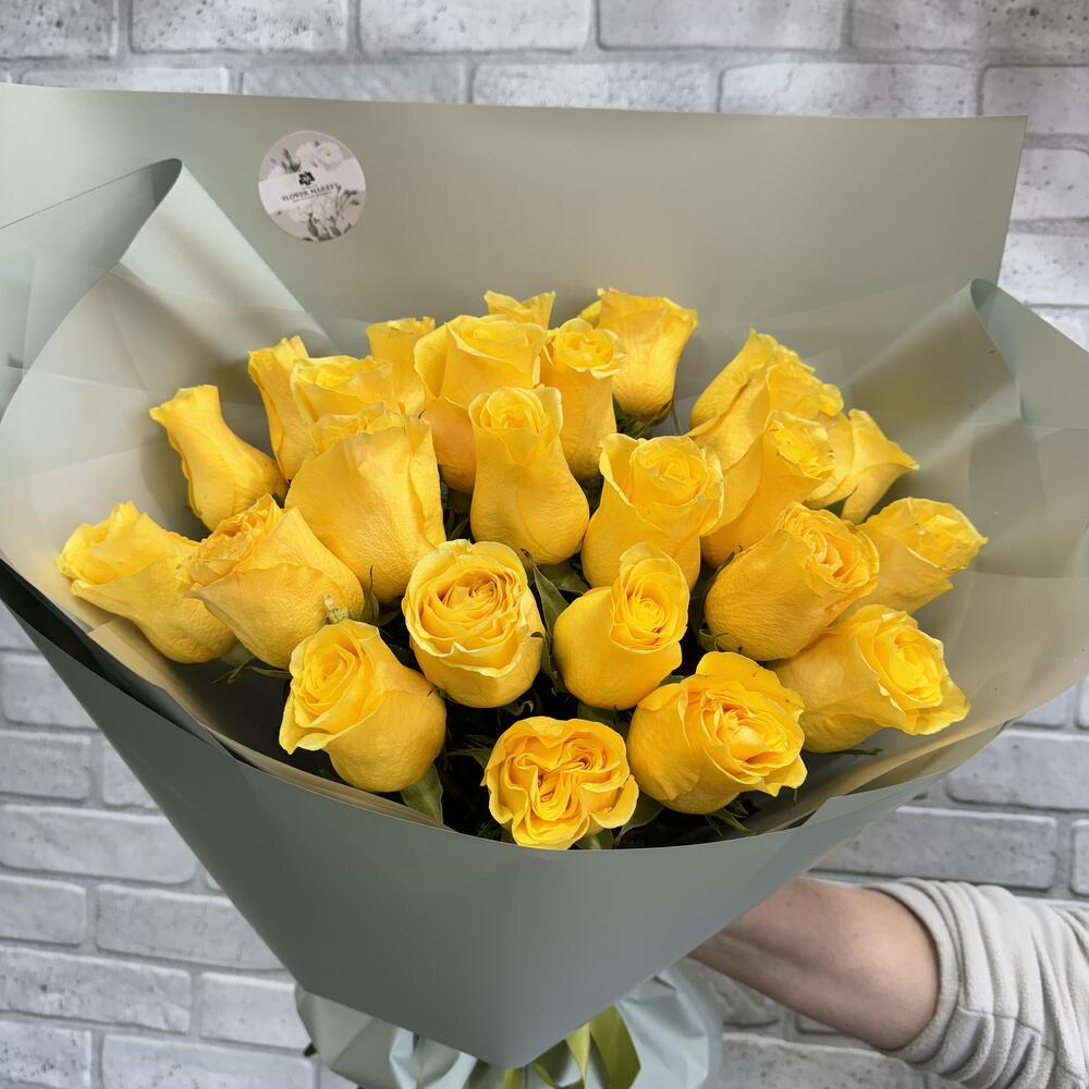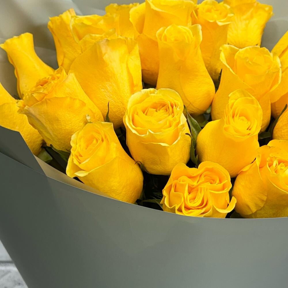 Лента - 1 шт. Бумага - 5 шт. желтые розы - 25 шт.