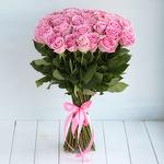 Розовая роза - 35 шт. Лента атласная - 1 шт.