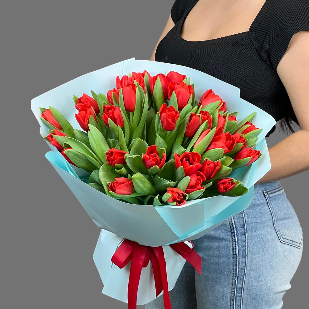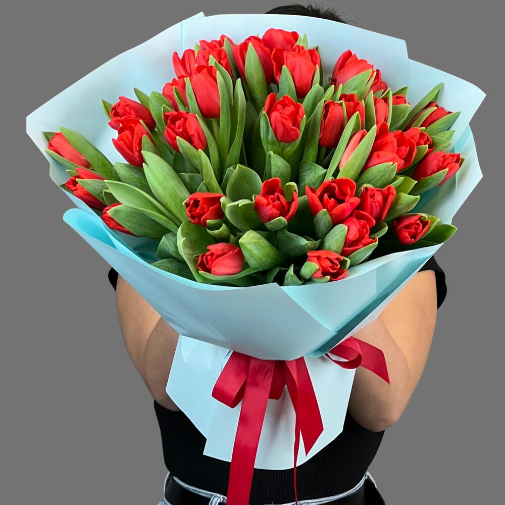 Тюльпаны выглядят одновременно нежно и элегантно, поэтому они всегда остаются одним из самых любимых и универсальных цветов. Букет оформляется в стильную упаковку, которая подчёркивает естественную красоту цветов и делает композицию ещё более эффектной. Свежие тюльпаны долго сохраняют свою красоту и наполняют пространство весенним настроением.