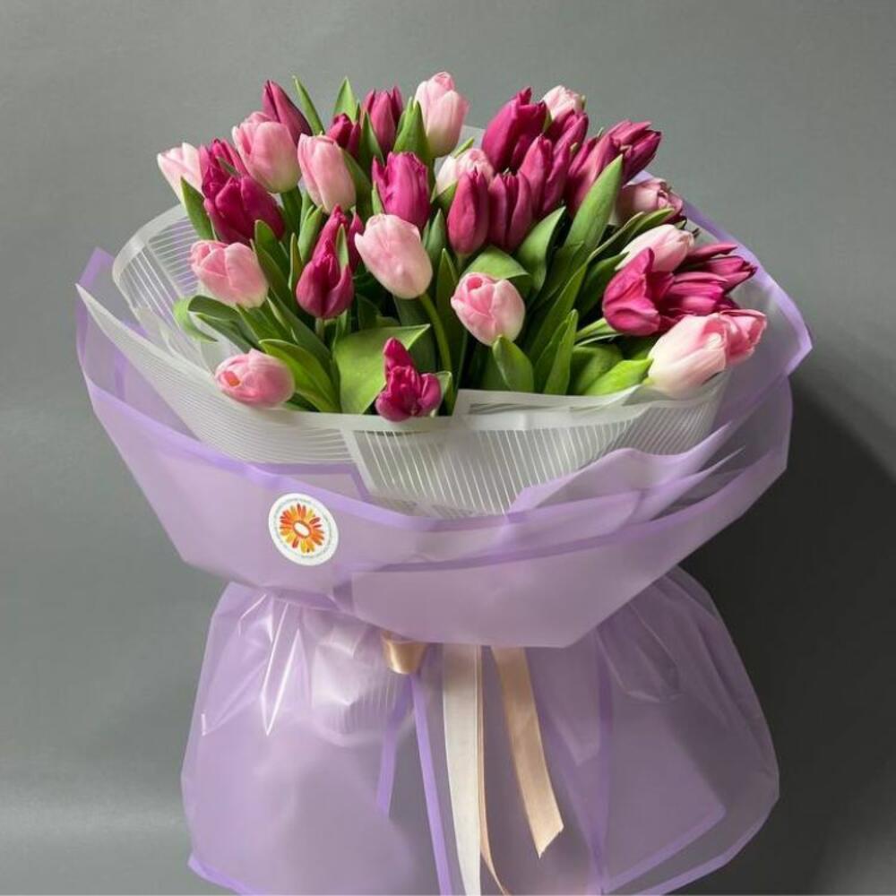 Букет из 35 тюльпанов от цветчного магазина Оранж Алматы