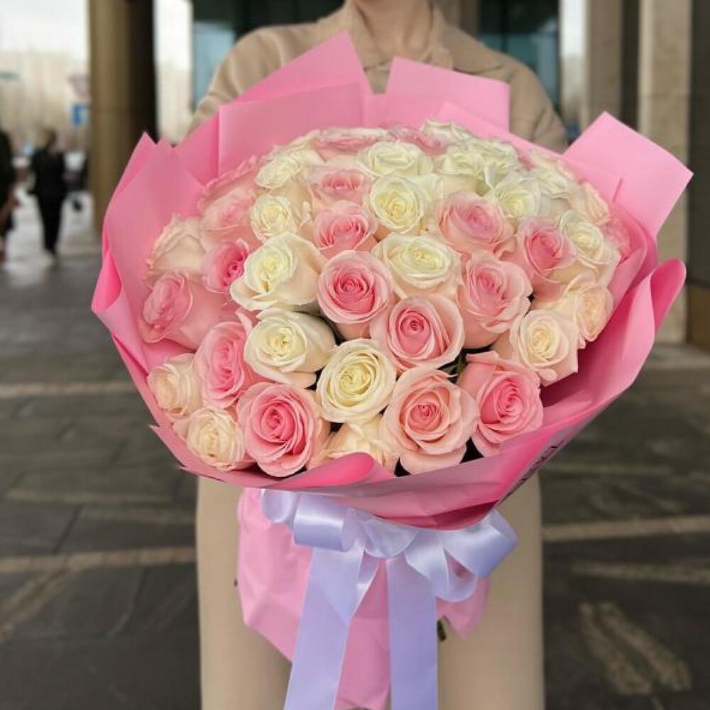 Букет из 45 нежных роз в фирменной упаковке
