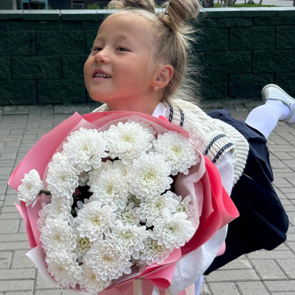 Букет из 5 веток белых хризантем в фирменной упаковке