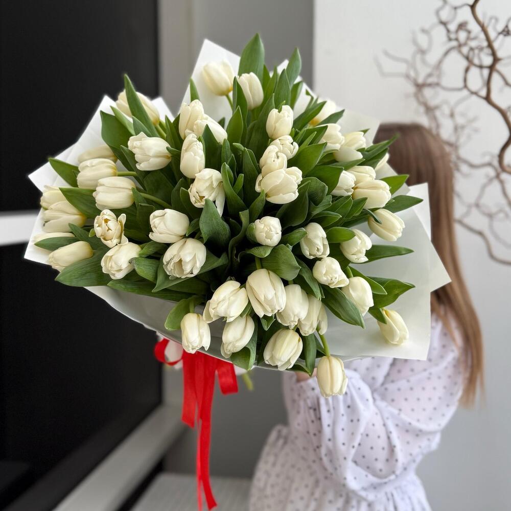 Букет из 51 белого тюльпана
