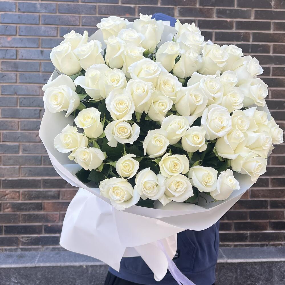 Шикарный букет из 51 белой розы Объемный и ароматный букет будет радовать ваших близких долгое время