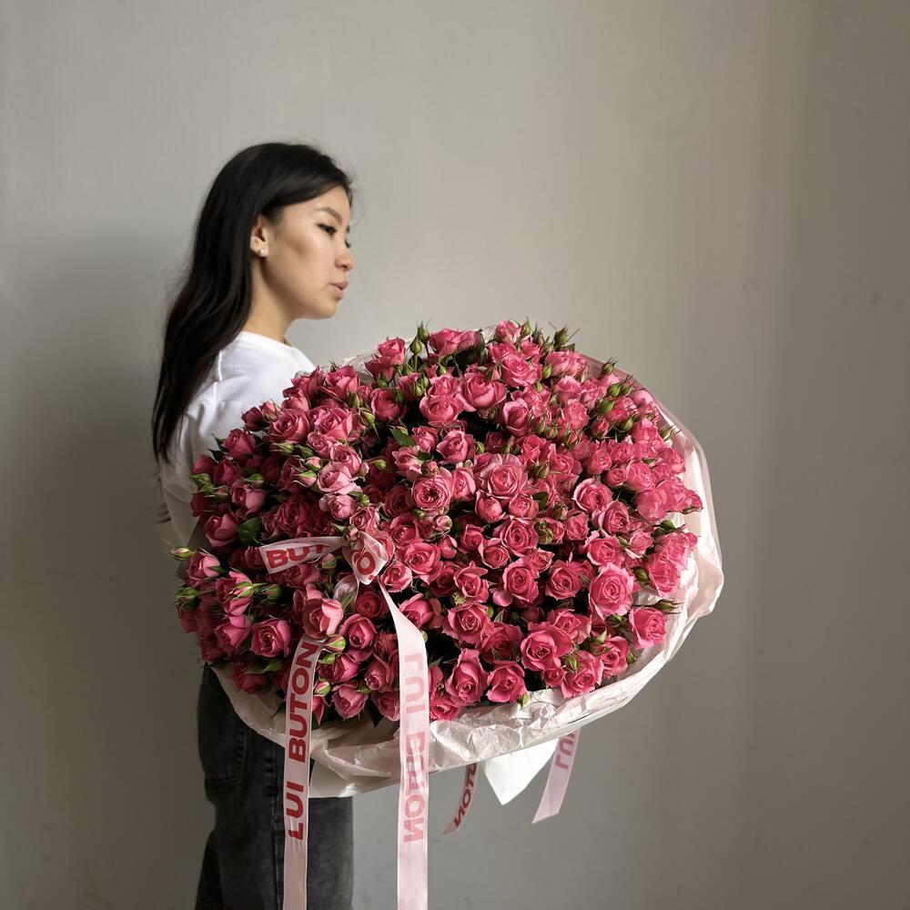 Этот пышный монобукет из 51 сияющей кустовой розы София безусловно завладеет вниманием. Эти изящные цветы с нежными бутонами прекрасно смотрятся в любом интерьере, подчеркивая царственный домашний уют. Они говорят о тактильных удовольствиях, нежной любви и проницательности. Букет будет идеальным подарком для любого особого случая или просто чтобы скрасить обычный день.