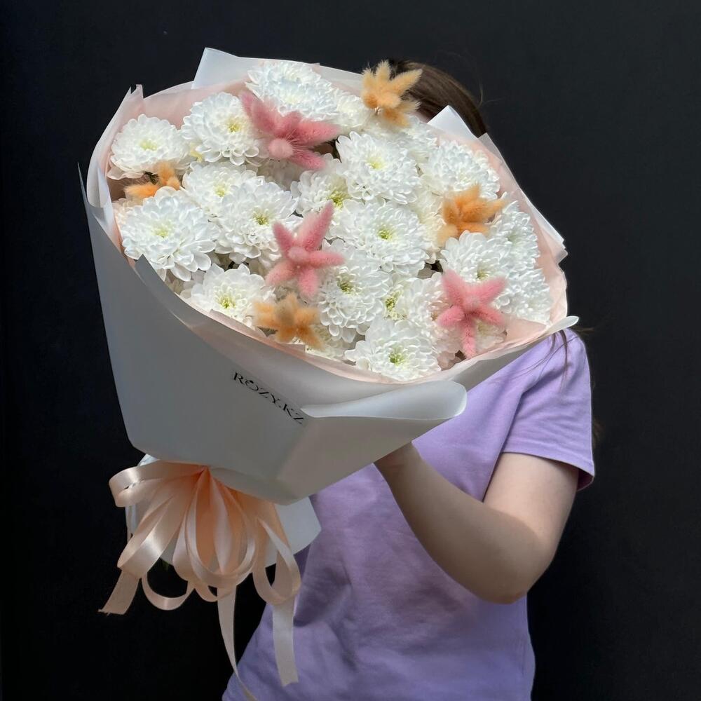 Хризантема кустовая - 7 шт. лагурус (сухоцвет) пучок - 7 шт.