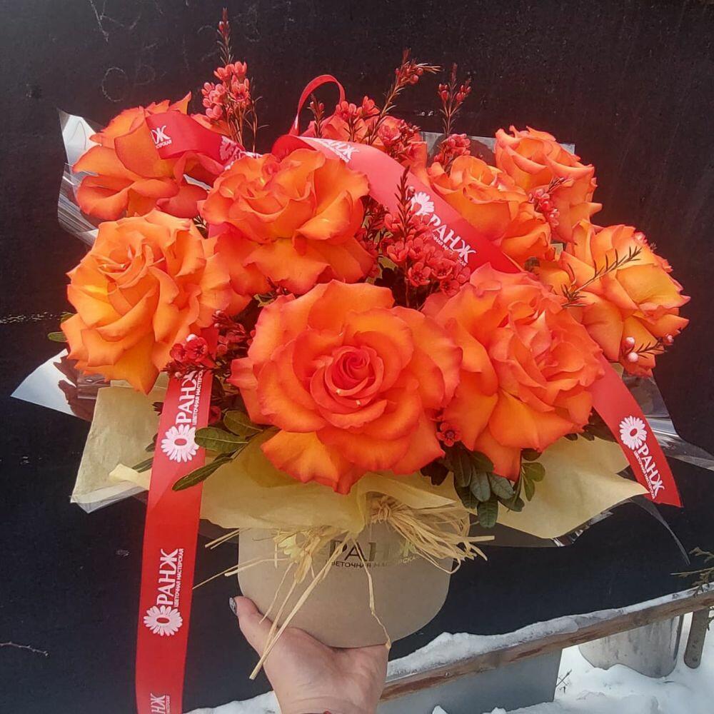 Букет из 9 французских роз в коробке от Цветочного магазина Оранж Алматы