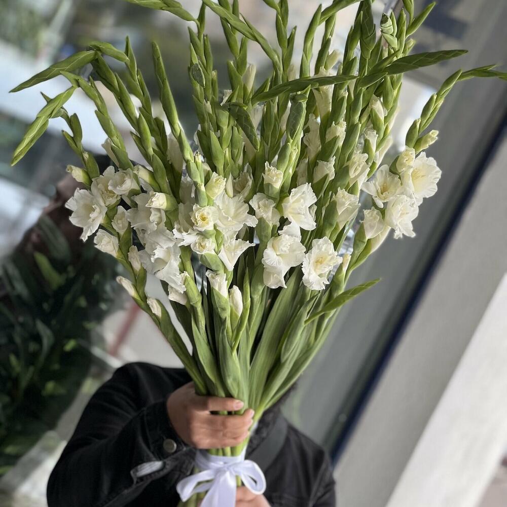Букет из белых 19 Гладиолусов