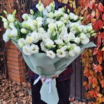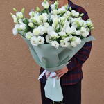 Букет из 29 белых лизиантусов, перевязанный шелковой лентой