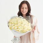 Элегантный букет из кремово-белых роз, оформленный в изящную упаковку. Идеальный выбор для выражения чистоты и нежности чувств✨