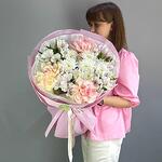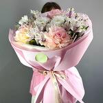 Роза французская розовая - 3 шт. хризантема алтай - 2 шт. альстромерия белая - 4 шт.