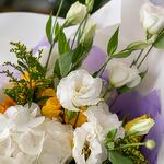 привезли букет с частично поломанными, частично скомканными и размазанными цветами. впечатление так себе ну и как видим фото товара не соответствует действительности. эвкалипта нет (да и в описании тоже)