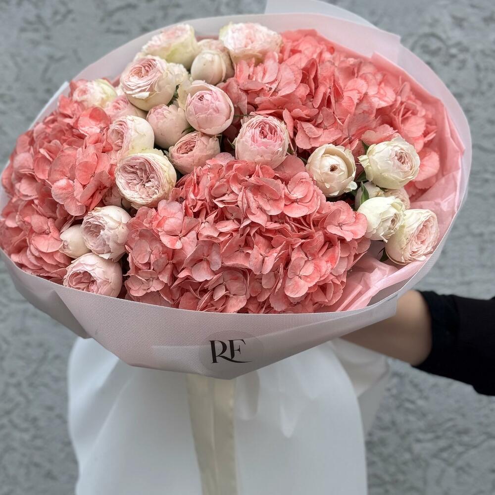Гортензия - 3 шт. пионовидные розы - 5 шт.