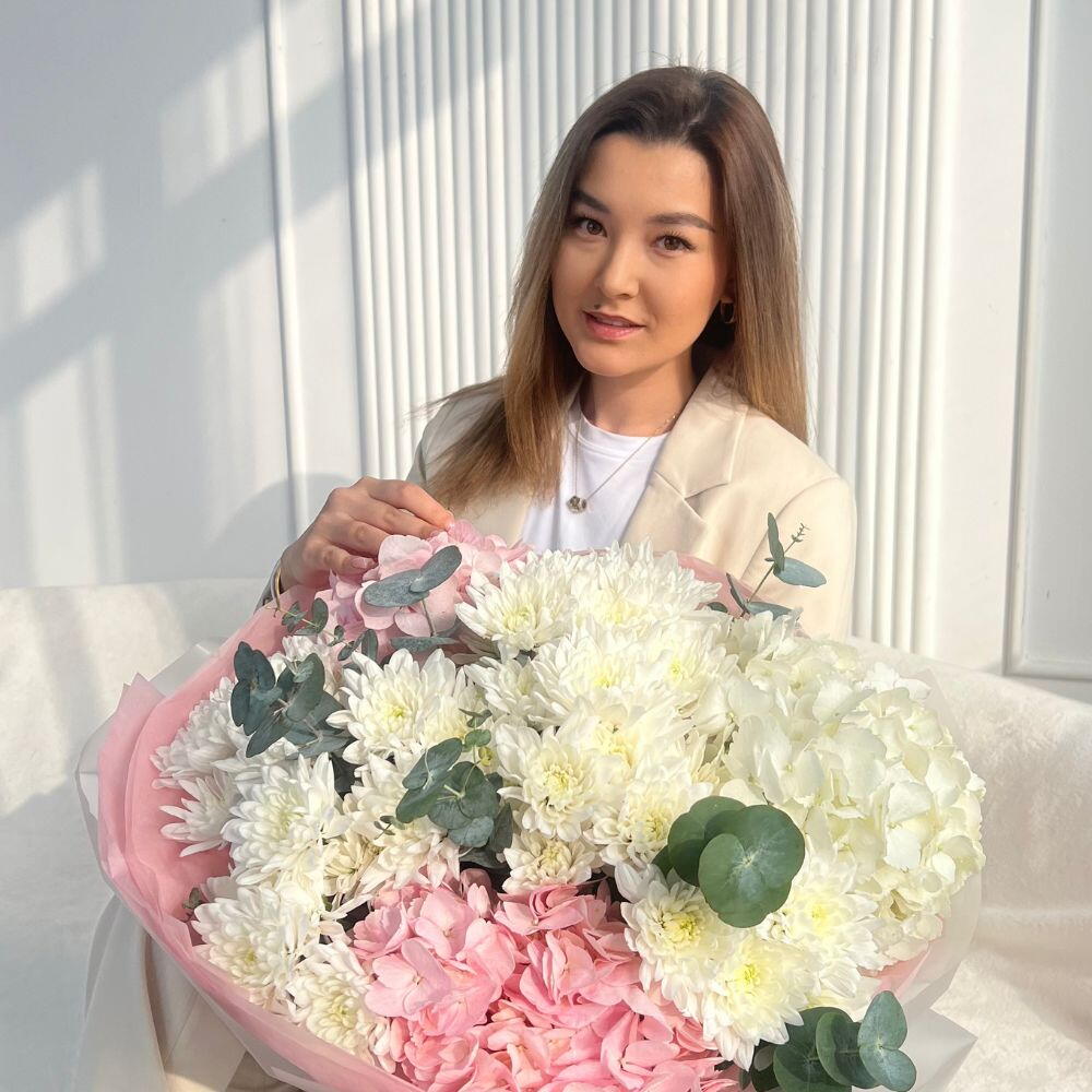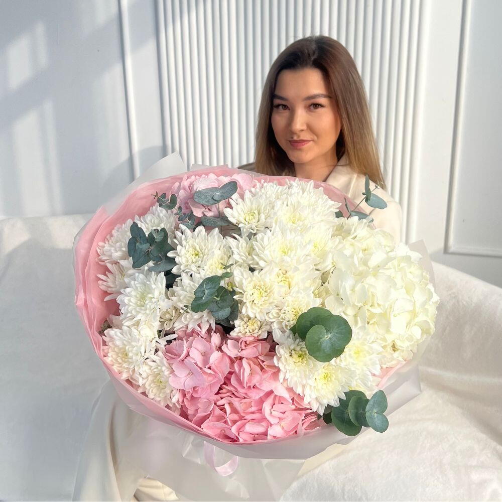 Кустовая хризантема - 7 шт. гортензии - 3 шт.