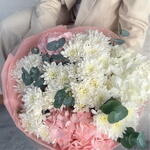 Букет из хризантем и гортензий — это гармоничное сочетание объёма, нежности и утончённого стиля. Пышные гортензии создают воздушную основу композиции, а кустовые хризантемы добавляют текстуру и делают букет выразительным и живым. Такая композиция выглядит свежо, современно и подойдёт как для торжественного события, так и для приятного знака внимания без повода. Букет отличается хорошей стойкостью и долго сохраняет привлекательный внешний вид, что делает его практичным и эстетичным подарком.