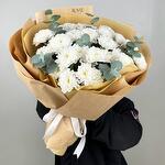 Букет из хризантем с эвкалиптом в оформлении