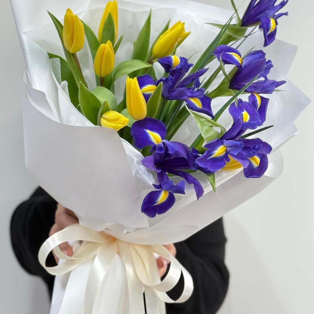 Букет из ирисов и тюльпанов