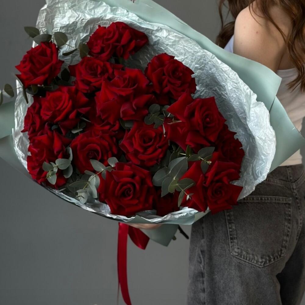 Эвкалипт - 2 шт. Роза Эквадор - 15 шт. Упаковка дизайнерская - 5 шт.