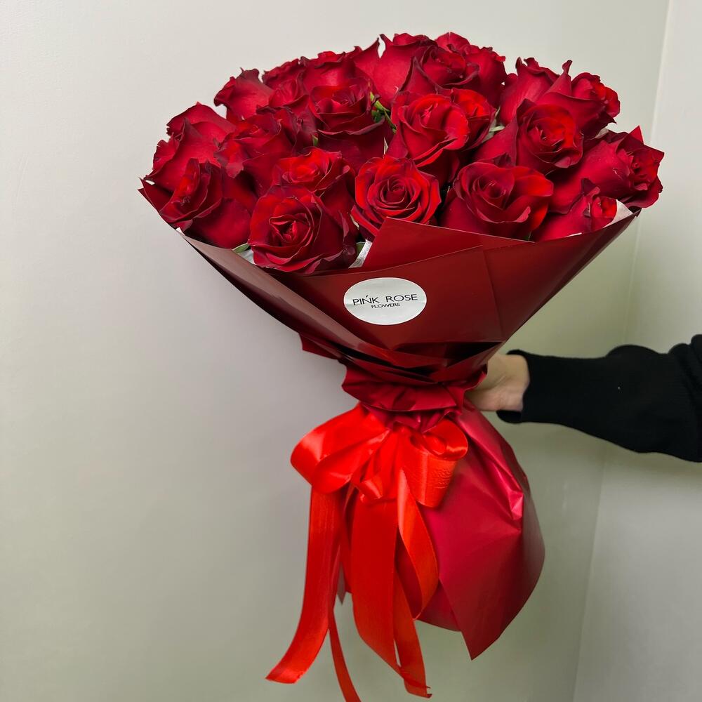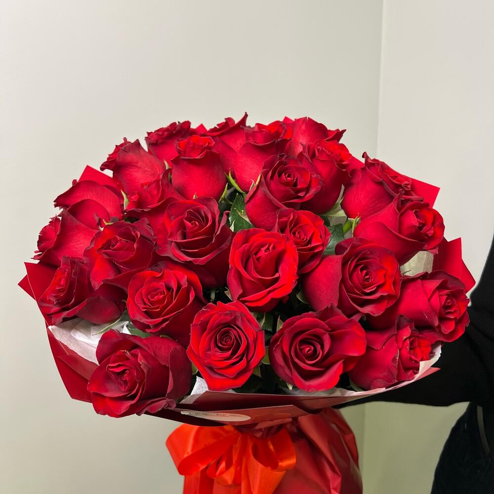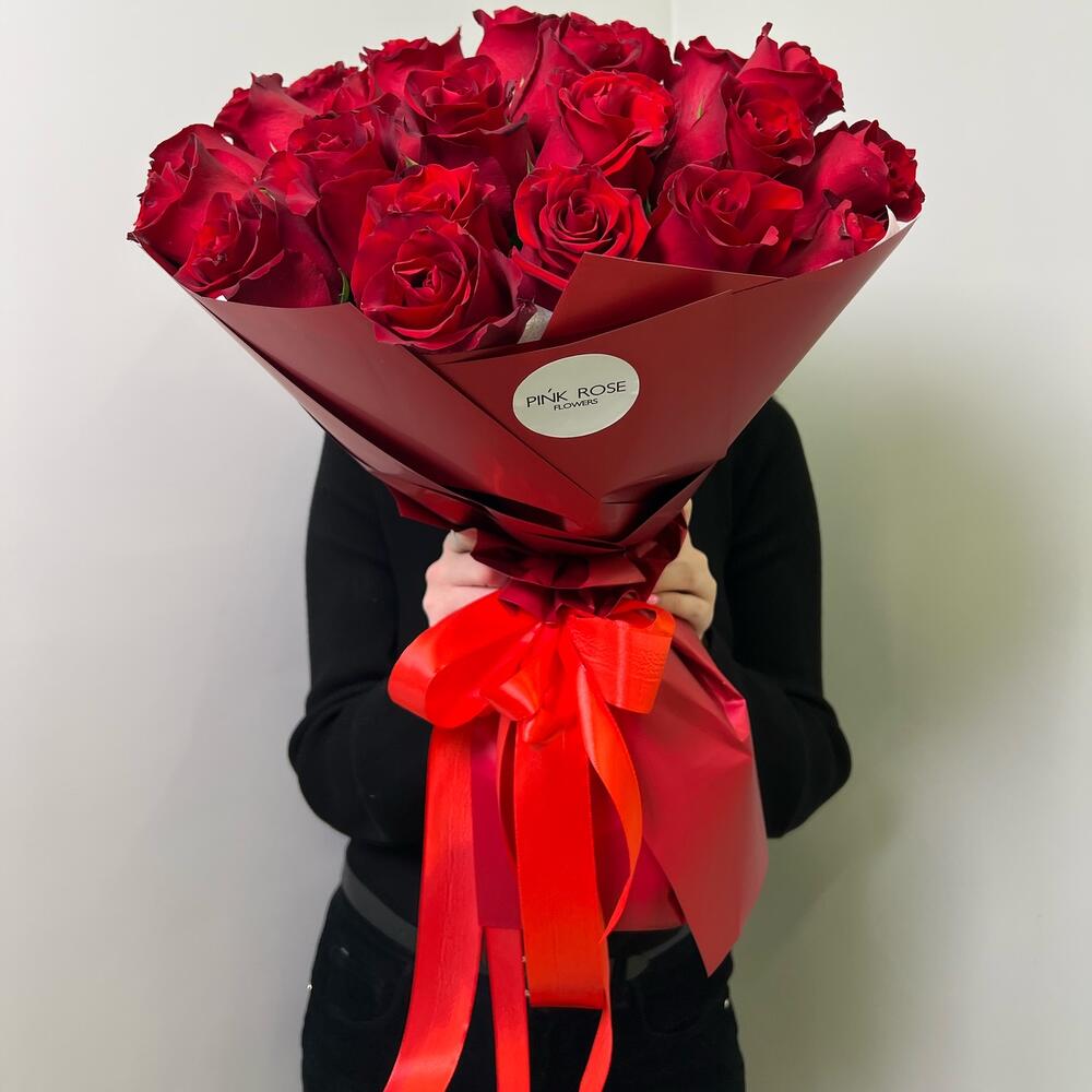 красные голландские розы - 25 шт.