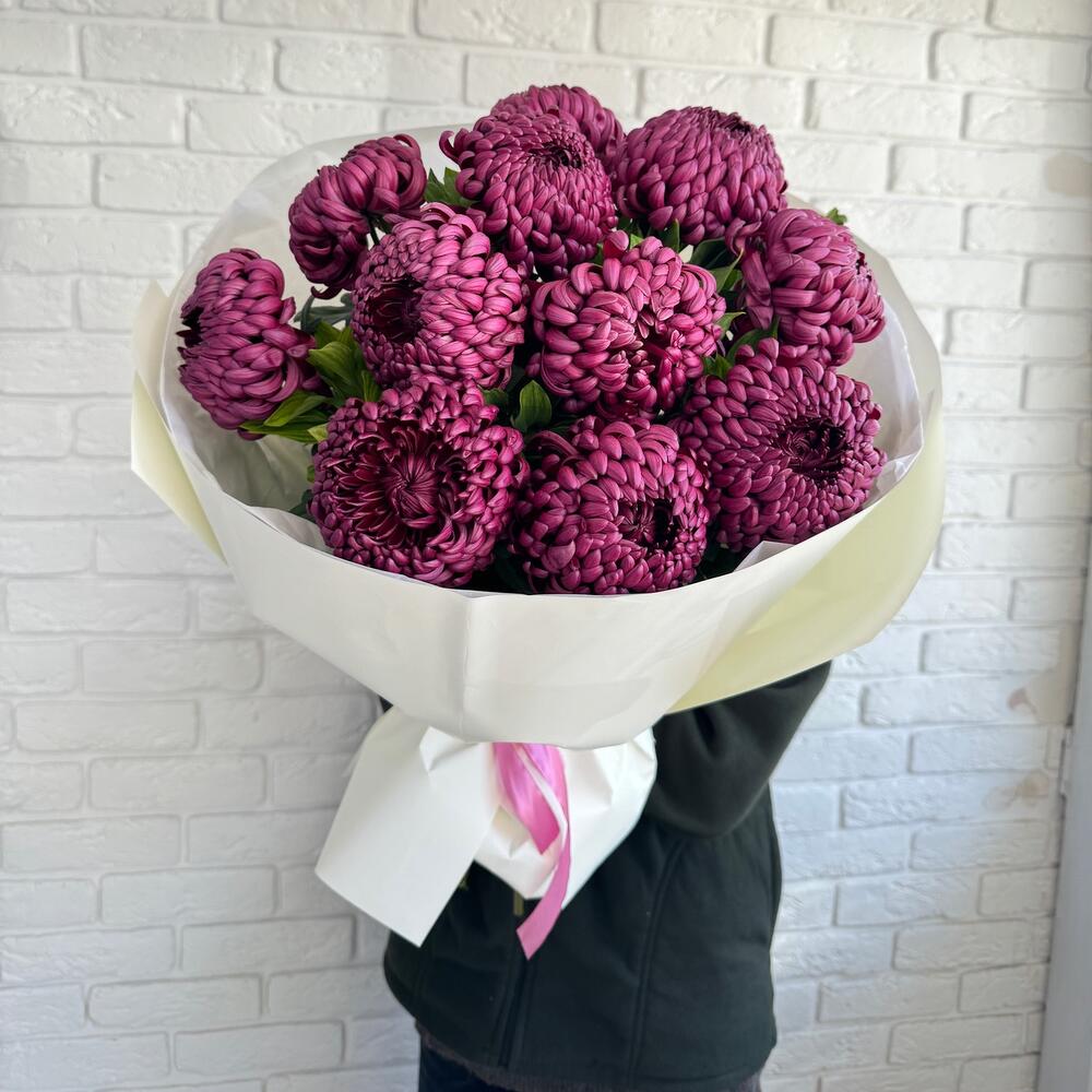 Писташ - 4 шт. Бант - 1 шт. Оформление - 6 шт. хризантема бигуди - 11 шт.