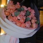 Эвкалипт - 1 шт. Упаковка дизайнерская - 1 шт. кустовая роза джульетта - 9 шт.