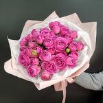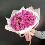 Роза кустовая - 15 шт. Лента атласная - 2 шт. бумага дизайнерская - 4 шт.