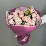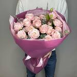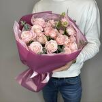 Нежный и романтичный букет из кустовых пионовидных роз, словно объятый свежим зеленым эвкалиптом. Это идеальный подарок для особенного человека, который подчеркнет ваши искренние чувства. Аромат цветов наполняет воздух гармонией, а их уникальный облик несомненно вызовет восторг у получателя. Окунитесь в мир природной красоты с этим элегантным и незабываемым букетом.