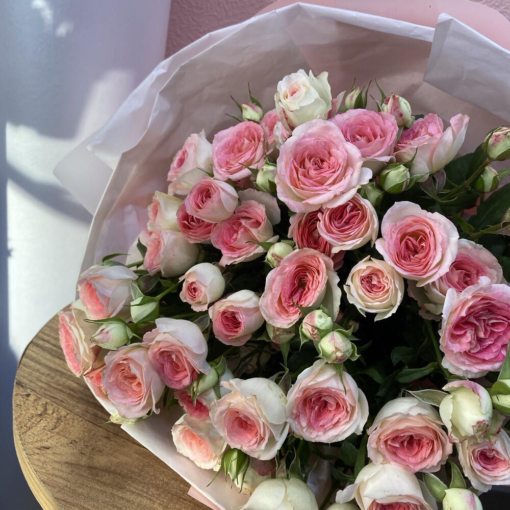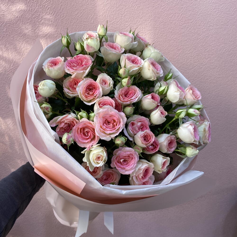 Украсьте свой день с этим изысканным монобукетом, состоящим из семи нежных кустовых роз! Эти великолепные цветы станут эффектным акцентом в вашем интерьере или значимым подарком для любимого человека. Наслаждайтесь красотой и ароматом свежесрезанных цветов каждый день!