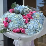 Букет из кустовых роз и гортензий