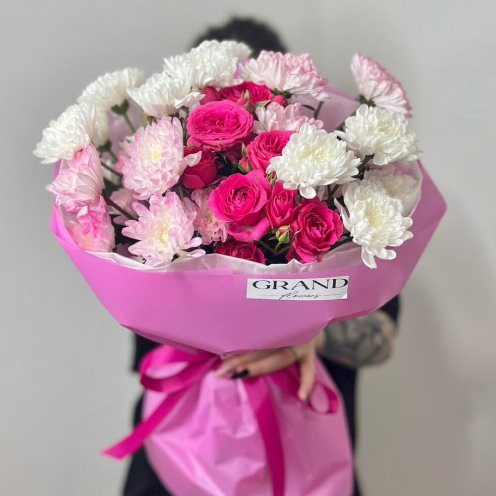 кустовых хризантемы - 4 шт. кустовые розы софи - 2 шт.