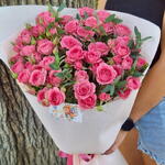 Нежные кустовые розы сорта «София» в насыщенно-розовом оттенке создают атмосферу радости и красоты. Собирается в день доставки. Идеально для признаний, Дня Рождения или просто без повода.