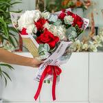 привезли букет с частично поломанными, частично скомканными и размазанными цветами. впечатление так себе ну и как видим фото товара не соответствует действительности. эвкалипта нет (да и в описании тоже)