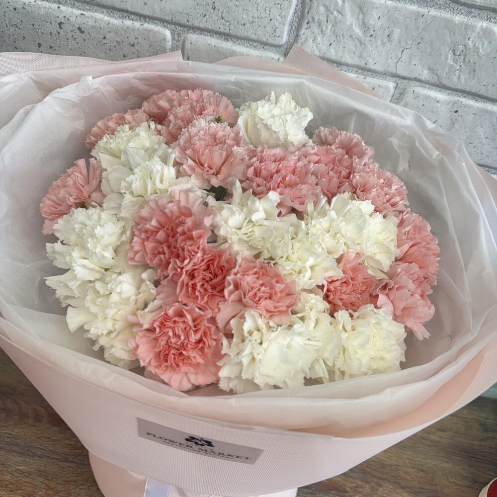 Нежный букет из диантусов, оттенки цветов и упаковки можно заменить по пожеланию