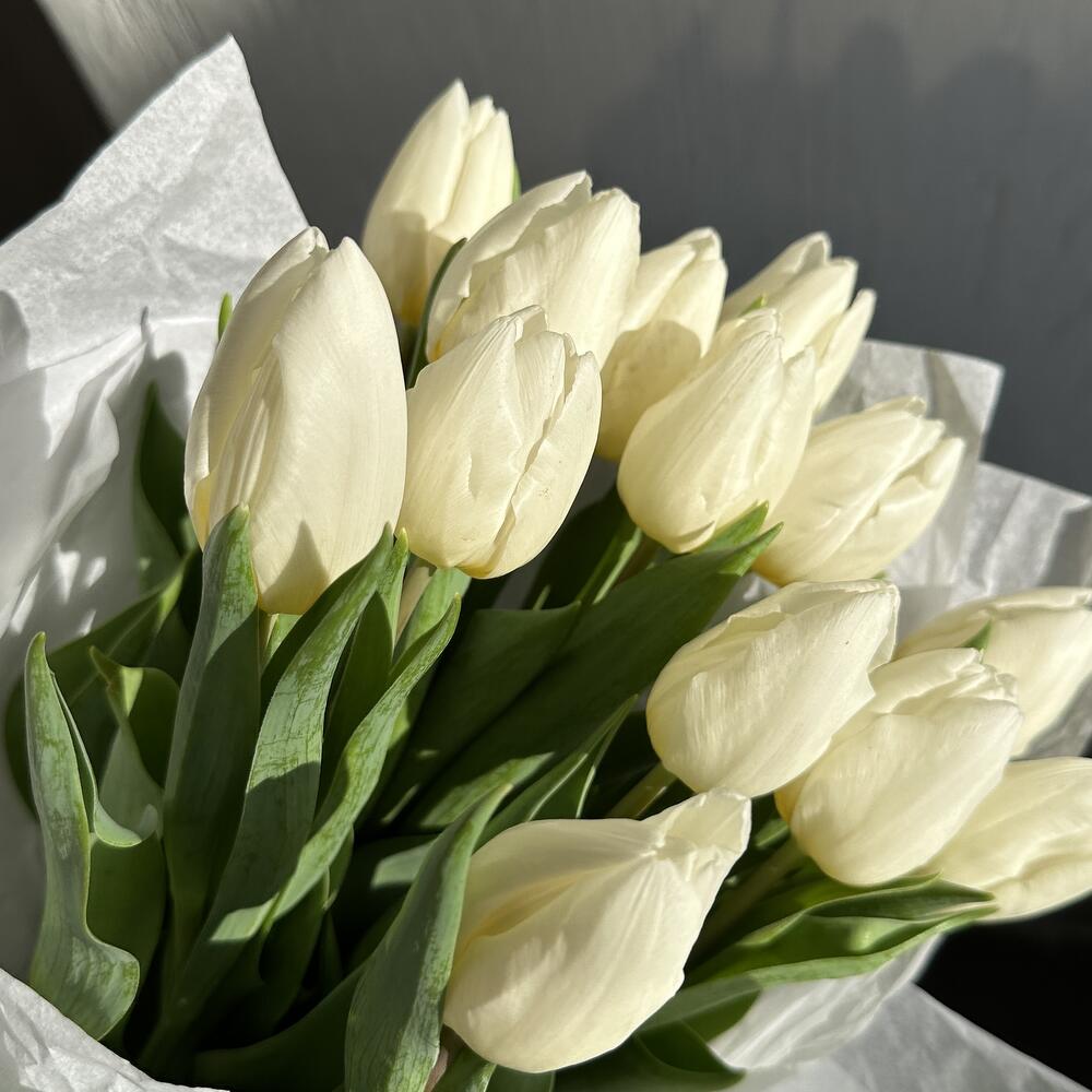 Упаковка дизайнерская - 1 шт. Тюльпан белый - 15 шт. аквабокс с водой - 1 шт. витамины для цветов (кризал) - 1 шт.