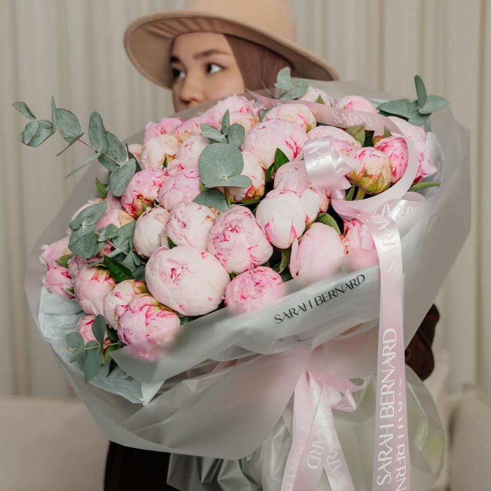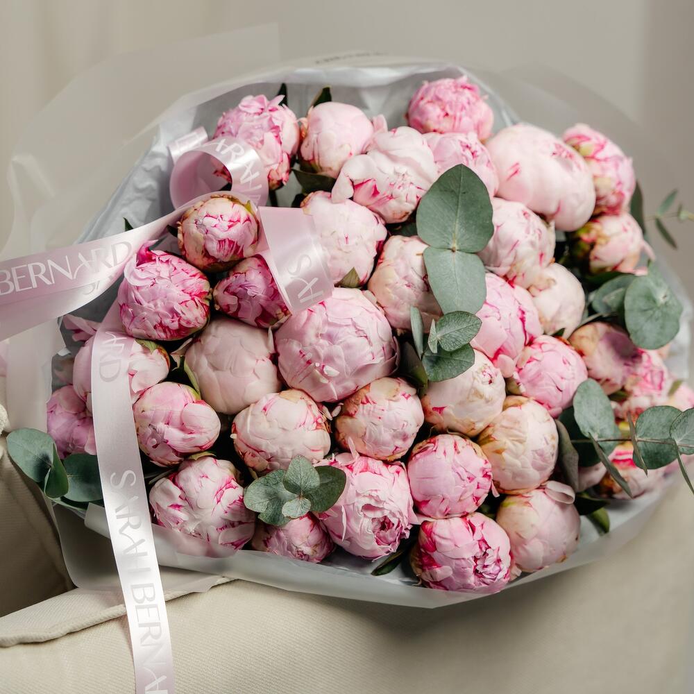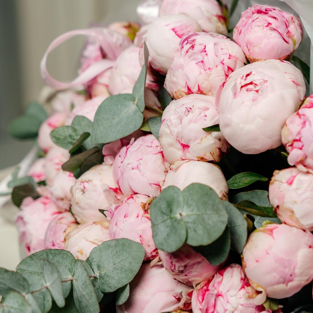 Пион - 45 шт. Эвкалипт - 8 шт. Оформление - 1 шт.
