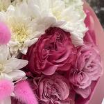 Гортензия - 3 шт. Хризантема кустовая - 4 шт. Эвкалипт - 3 шт. Роза пионовидная - 7 шт. Лагурус - 9 шт.