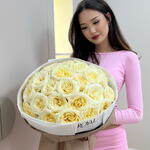 Букет красивый, бережно упакован и защищен от холода. Флорист связался со мной и уточнил какие цветы взять в букет.