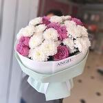 Этот авторский букет - истинное произведение искусства, перенесённое из мира природной красоты. Утончённые розовые розы, в количестве девяти штук, создают атмосферу романтики и любви. Четыре пышные кустовые хризантемы дополняют общую композицию, добавляя пикантности и великолепия. Букет идеально подходит для подарка близким, друзьям или любимым людям, подчеркивая ваше обаяние и чуткость. Чтобы цветы радовали дольше, держите их в прохладной воде, ежедневно обновляйте срезы стеблей и убирайте увядшие листья. Такой уход сохранит свежесть букета до 7–10 дней, позволяя дольше наслаждаться его изысканной красотой.