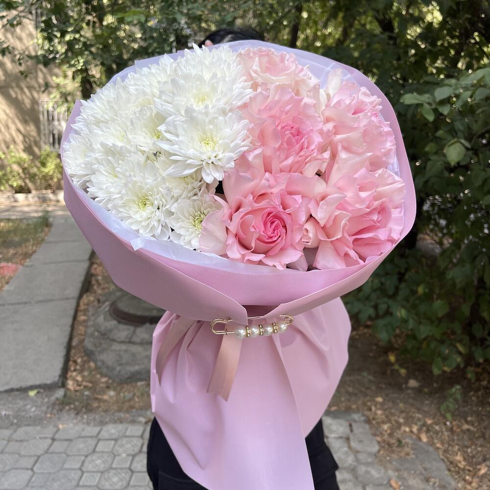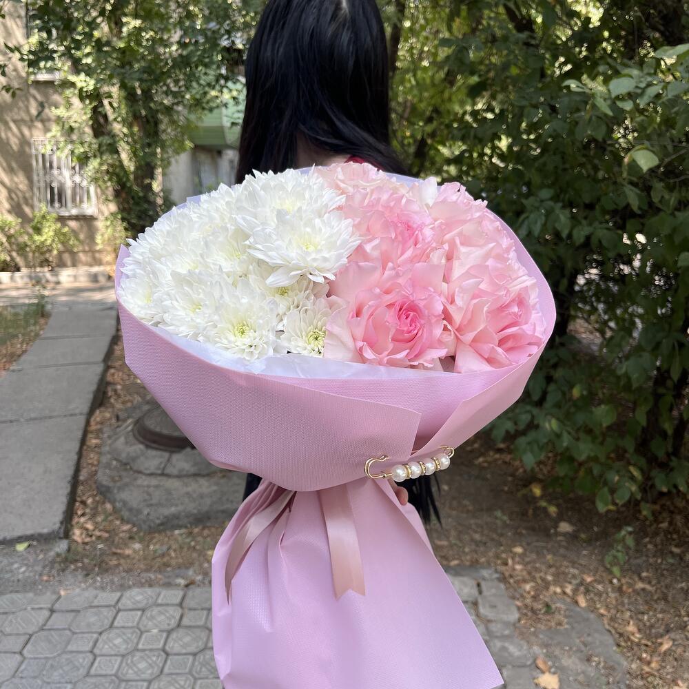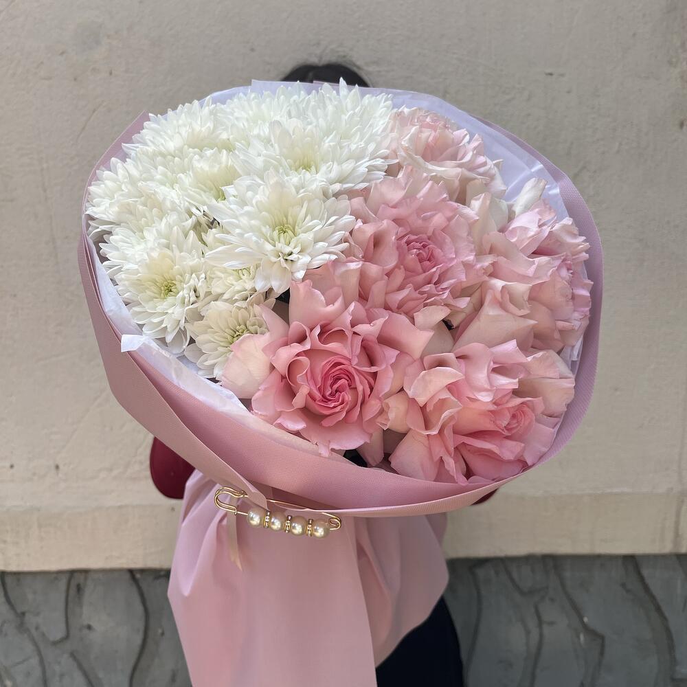 Хризантема кустовая - 5 шт. Роза - 5 шт.
