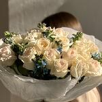 Роза Охара - 23 шт. Фирменная упаковка - 1 шт. Твидия - 9 шт. аквабокс с водой - 1 шт. витамины для цветов (кризал) - 1 шт.