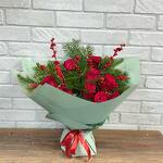 Илекс - 2 шт. Роза - 9 шт. Бумага - 4 шт. Пихта живая - 5 шт.