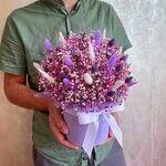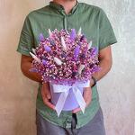 Оазис - 1 шт. Лагурус (сухоцвет) - 30 шт. Коробка d15 - 1 шт. гипсофила (сухоцвет) - 9 шт. фаларис (сухоцвет) - 20 шт.