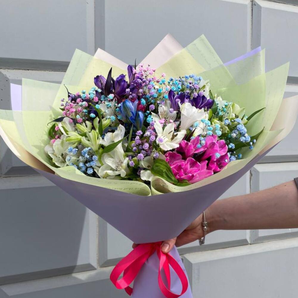 Альстромерия - 9 шт. радужная гипсофила - 3 шт.